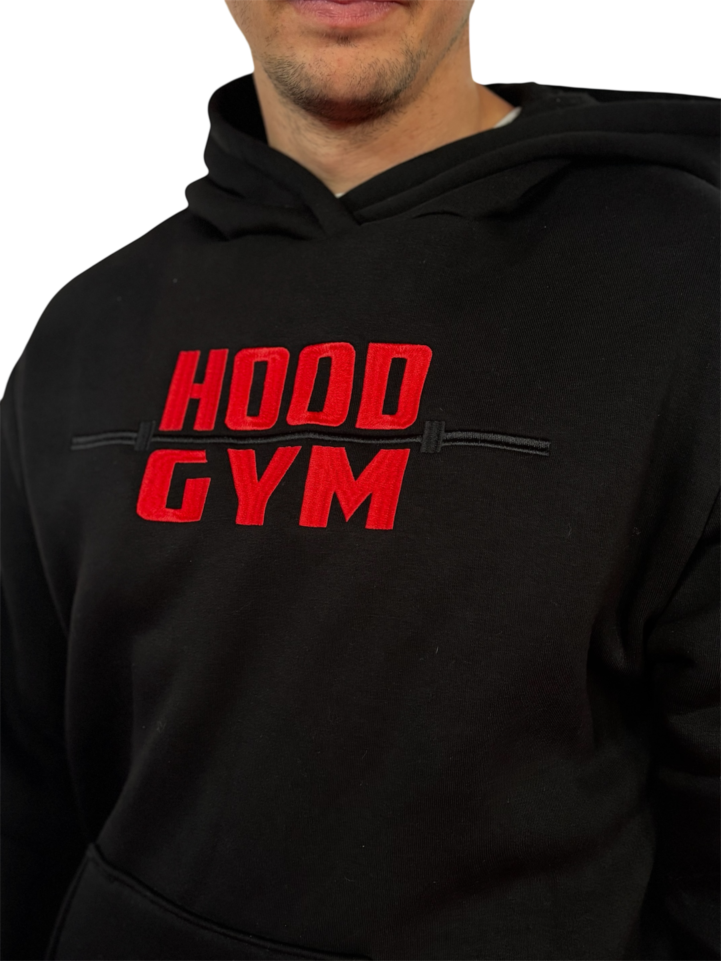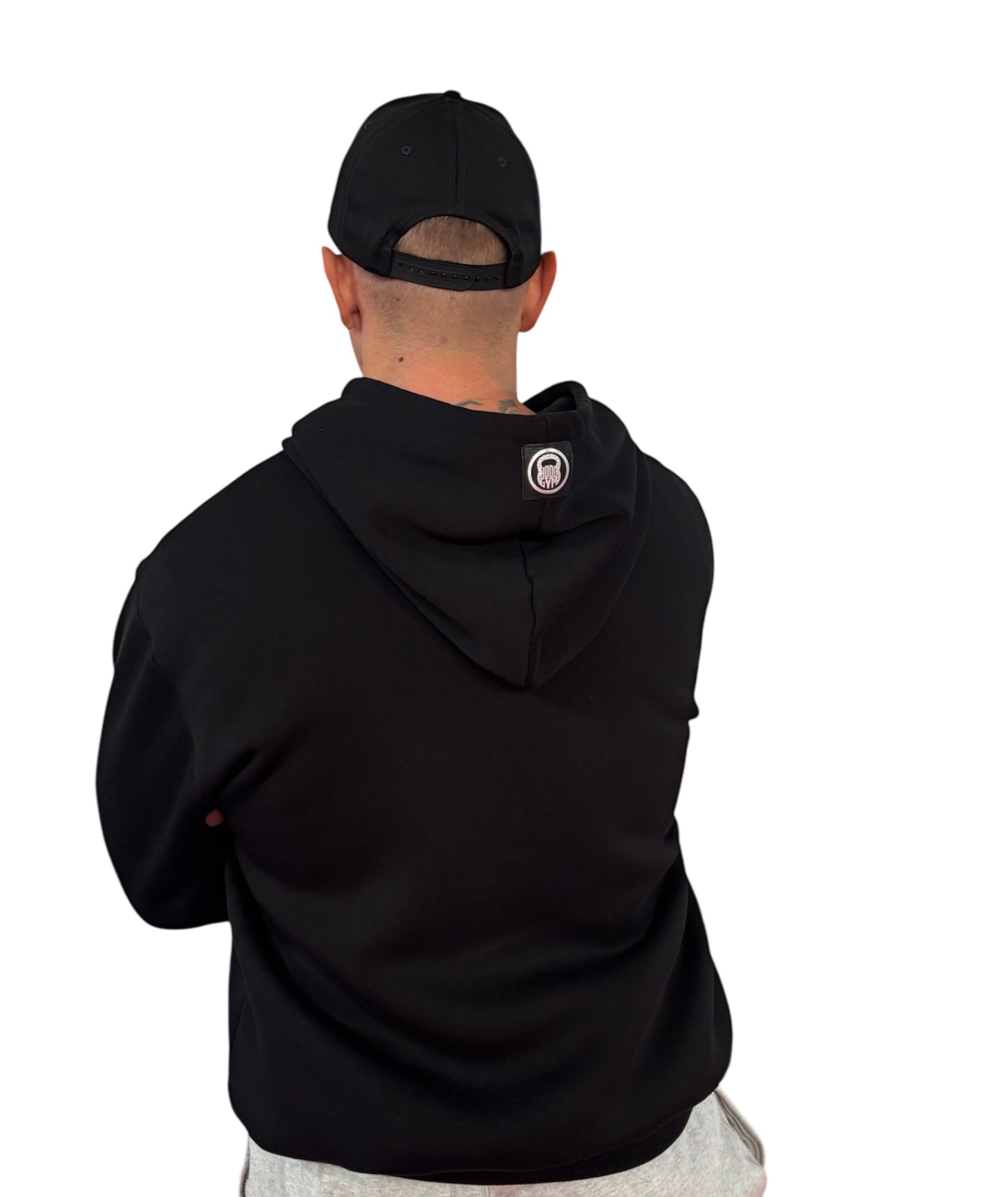 Černá mikina HoodGym s vyšitým logem.